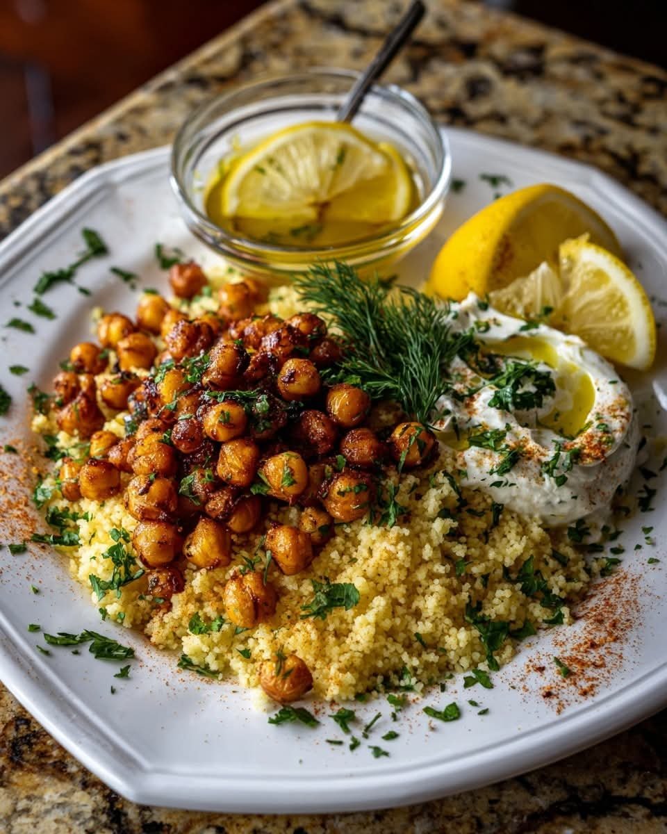 This dish is a vibrant, healthy, and protein-packed meal featuring fluffy couscous tossed with fresh herbs and zesty lemon, paired with crispy roasted chickpeas. It’s perfect as a light lunch, dinner, or side dish. The combination of the lemony, aromatic couscous and the crunchy, spiced chickpeas makes it both satisfying and nutritious.