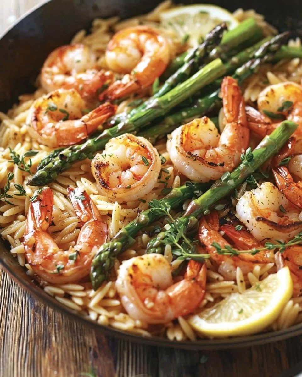 This Lemon Shrimp Orzo with Asparagus is a light, fresh, and flavorful dish that’s perfect for spring and summer. It combines tender shrimp, al dente orzo, and crisp asparagus in a bright, lemony garlic butter sauce. The dish is balanced with a hint of Parmesan for richness and a touch of fresh herbs for an aromatic finish. It’s quick to make, ready in under 30 minutes, making it ideal for a weeknight dinner or a healthy meal prep option.