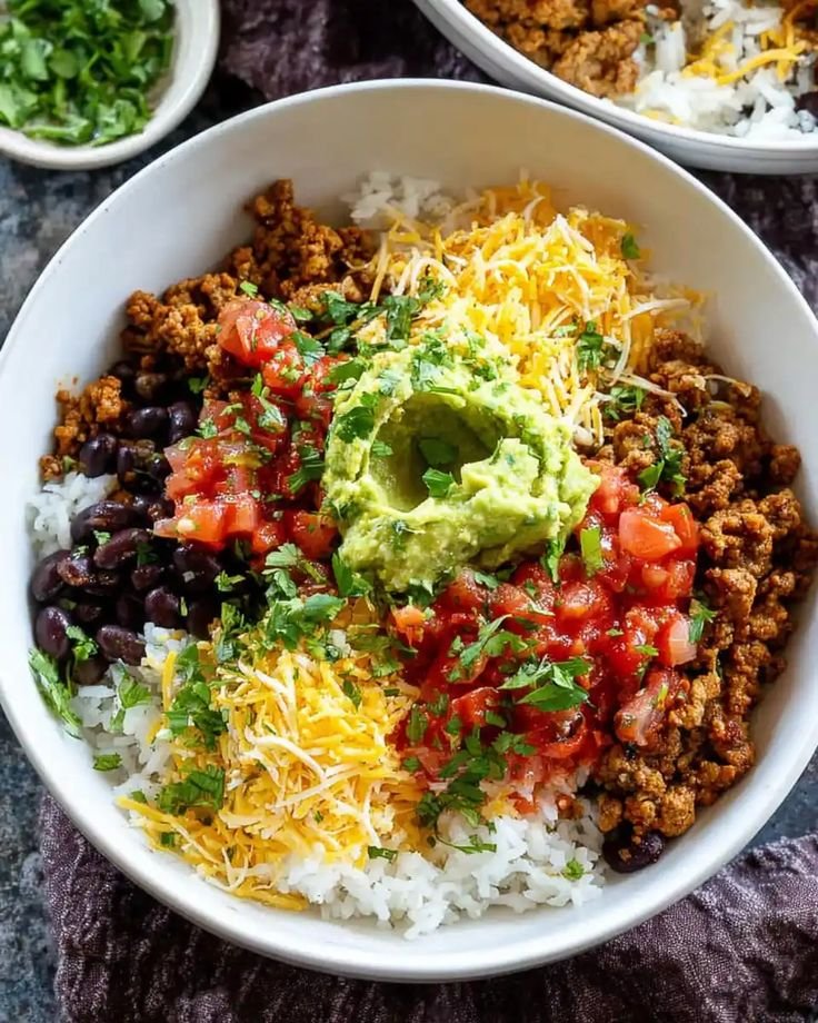 Loaded Taco Rice Bowl with Zesty Lime Crema