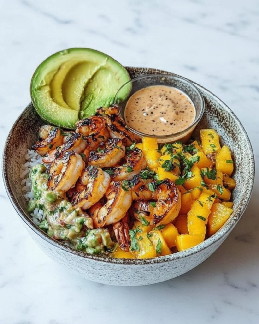 This Mango Shrimp Power Bowl is a colorful, balanced meal featuring succulent shrimp, sweet mango, crisp vegetables, and a zesty dressing over a base of whole grains or greens. Perfect for a light lunch or dinner, it’s loaded with vitamins, protein, and healthy fats. The sweet-and-spicy flavor profile paired with creamy avocado and crunchy nuts makes each bite a delight.