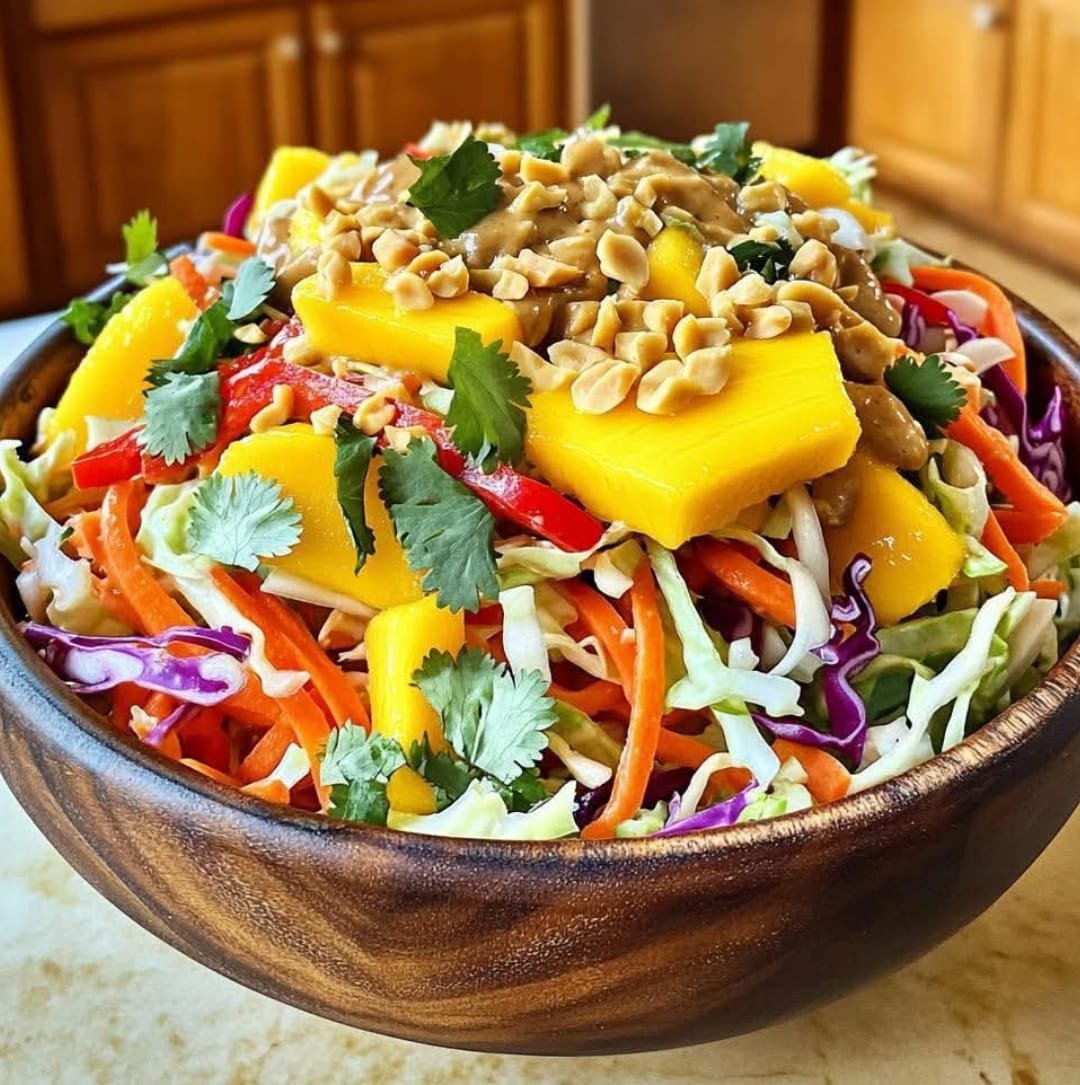 This vibrant Mango Slaw with Peanuts and Fresh Herbs is a crunchy, tangy, and slightly sweet salad perfect as a side dish or light main. Shredded cabbage and carrots form a crisp base, while ripe mango adds tropical sweetness. Toasted peanuts offer crunch and richness, and a handful of fresh herbs like mint and cilantro brighten everything up. Finished with a zesty lime-peanut dressing, it’s an ideal summer dish with Thai or Vietnamese flair.