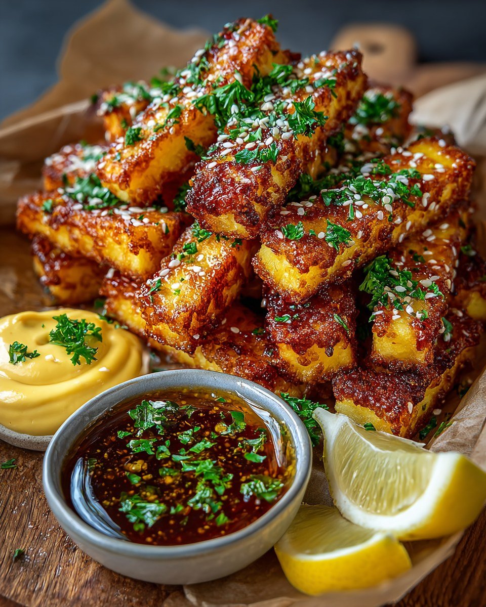 Maple-Glazed Halloumi Fries with Lemon-Tahini Dip