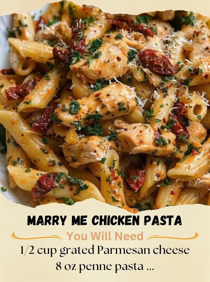 “Marry Me Chicken Pasta” gets its name from being so delicious it might inspire a marriage proposal. This dish features tender chicken breasts seared and simmered in a creamy, garlic-infused sun-dried tomato sauce, then tossed with pasta. It’s rich, flavorful, and comforting — perfect for date nights or cozy dinners.