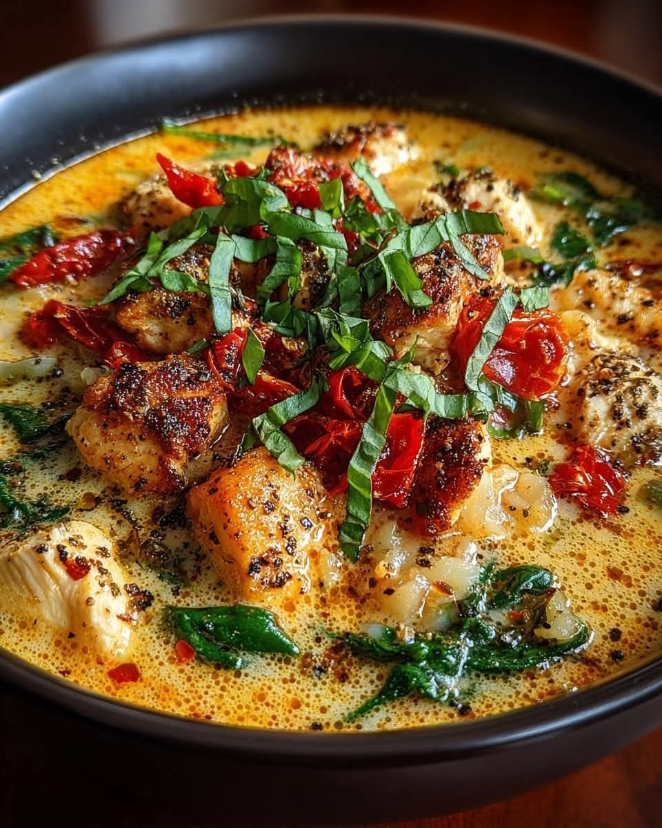 Stir in sun-dried tomatoes and tomato paste; cook for 1–2 minutes to deepen flavor.