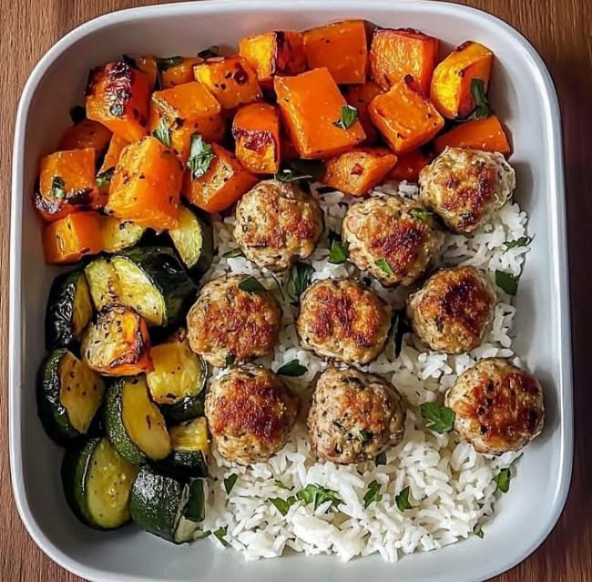 This hearty and delicious dish combines juicy, flavorful meatballs with a mix of beautifully roasted vegetables. It’s a perfect balance of protein and fiber, making it a nutritious and satisfying meal for any occasion.