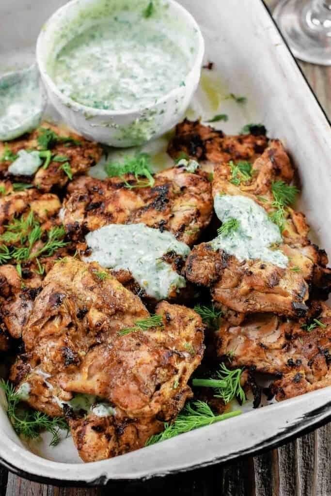 You can also serve these grilled thighs with tzatziki sauce or even this tahini green goddess dressing!