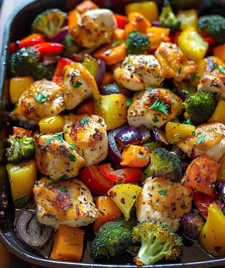 This Mediterranean 15-Minute Healthy Roasted Chicken and Veggies dish is a weeknight lifesaver — quick, colorful, and customizable. It’s packed with lean protein, antioxidant-rich veggies, and Mediterranean herbs that add tons of flavor without extra calories. Whether you’re meal-prepping or feeding a hungry family, this one-pan wonder is hearty, balanced, and endlessly versatile. Serve it as-is, or pair with grains, dips, or warm pita for a complete, crave-worthy meal!