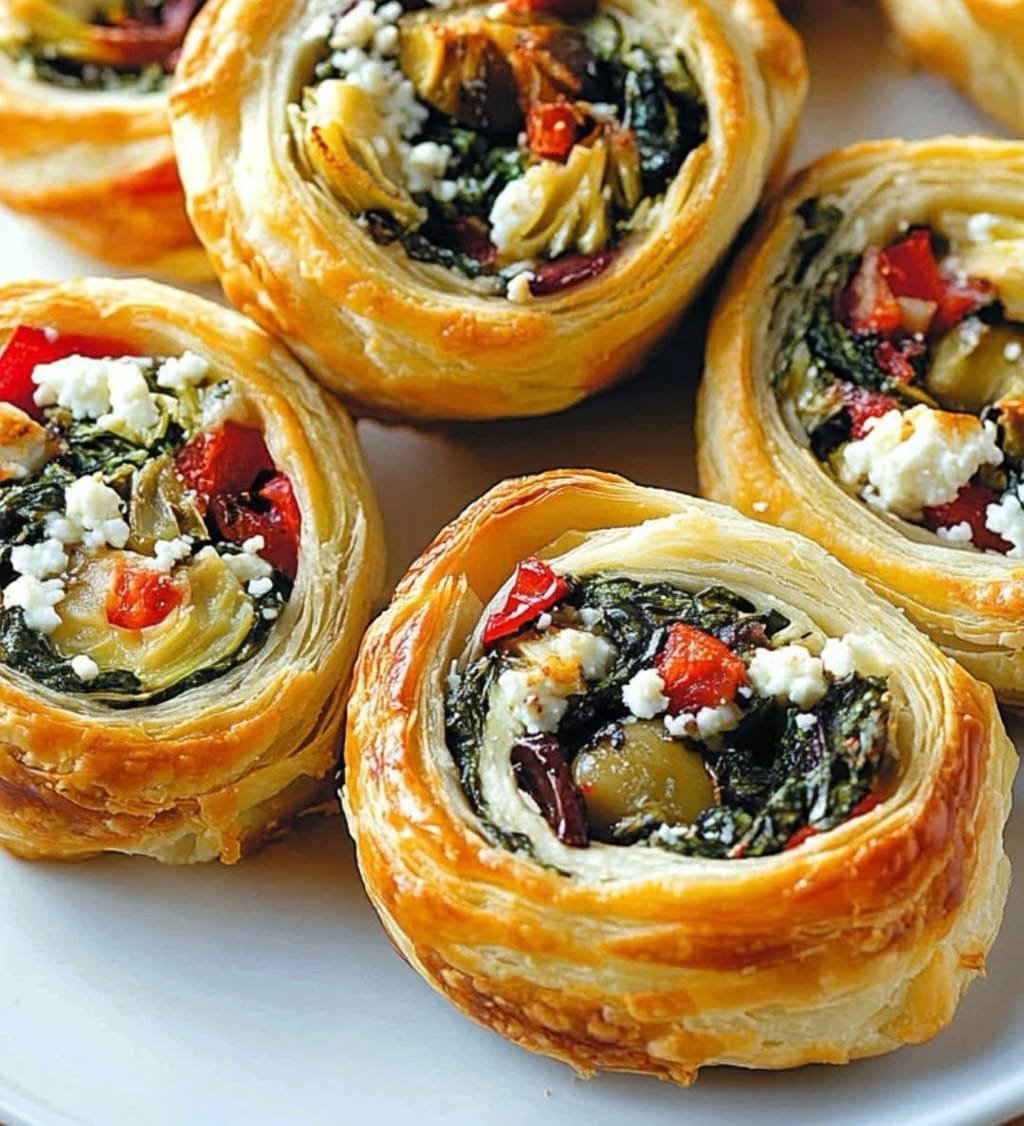 These flaky, golden pinwheels are bursting with bold Mediterranean flavors—think spinach, feta, olives, and artichokes all wrapped in buttery puff pastry. They’re perfect as a party appetizer, brunch bite, or savory snack. Quick to prepare and always a crowd-pleaser!