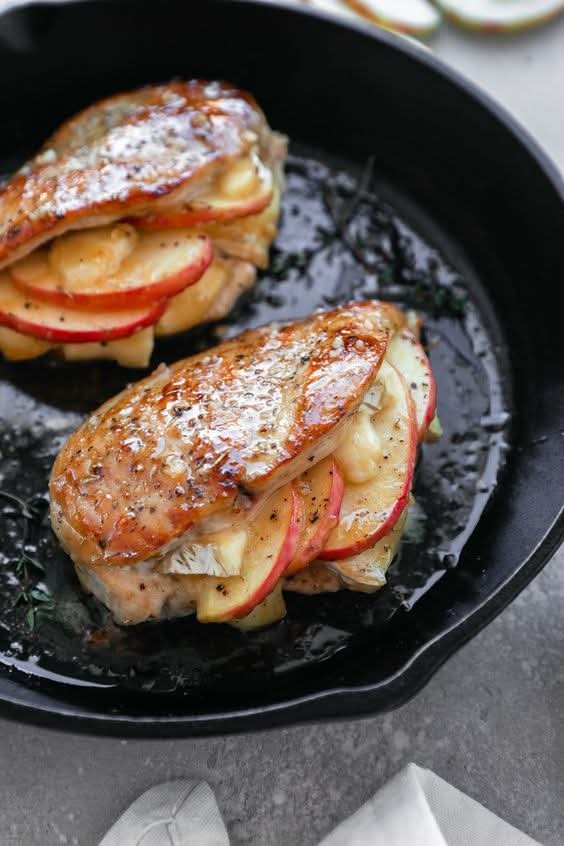 This dish brings together tender chicken, sweet apples, and creamy brie in a way that feels both comforting and fresh. The apple slices soften as they cook, the brie melts into the chicken, and the maple-Dijon glaze adds a touch of sweetness with a Mediterranean herb finish. It’s an easy recipe that looks impressive on the plate and works for both weeknights and dinner guests. You can serve it with roasted vegetables, couscous, or a light salad.