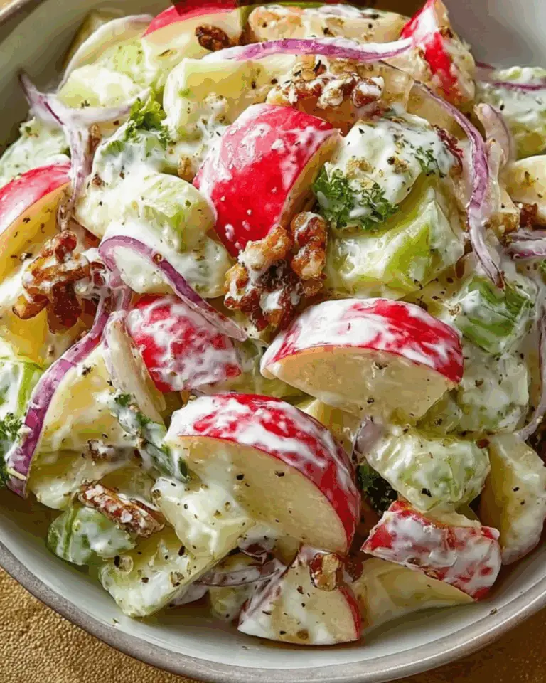 Mediterranean Apple Salad with Honey Yogurt Dressing is a simple yet thoughtful dish that highlights fresh ingredients and balanced flavors. It is crisp, creamy, and lightly sweet, making it a reliable choice for everyday meals or special occasions. With its flexible ingredients and quick preparation, this salad proves that healthy food can be both satisfying and enjoyable, all while staying refreshingly uncomplicated.