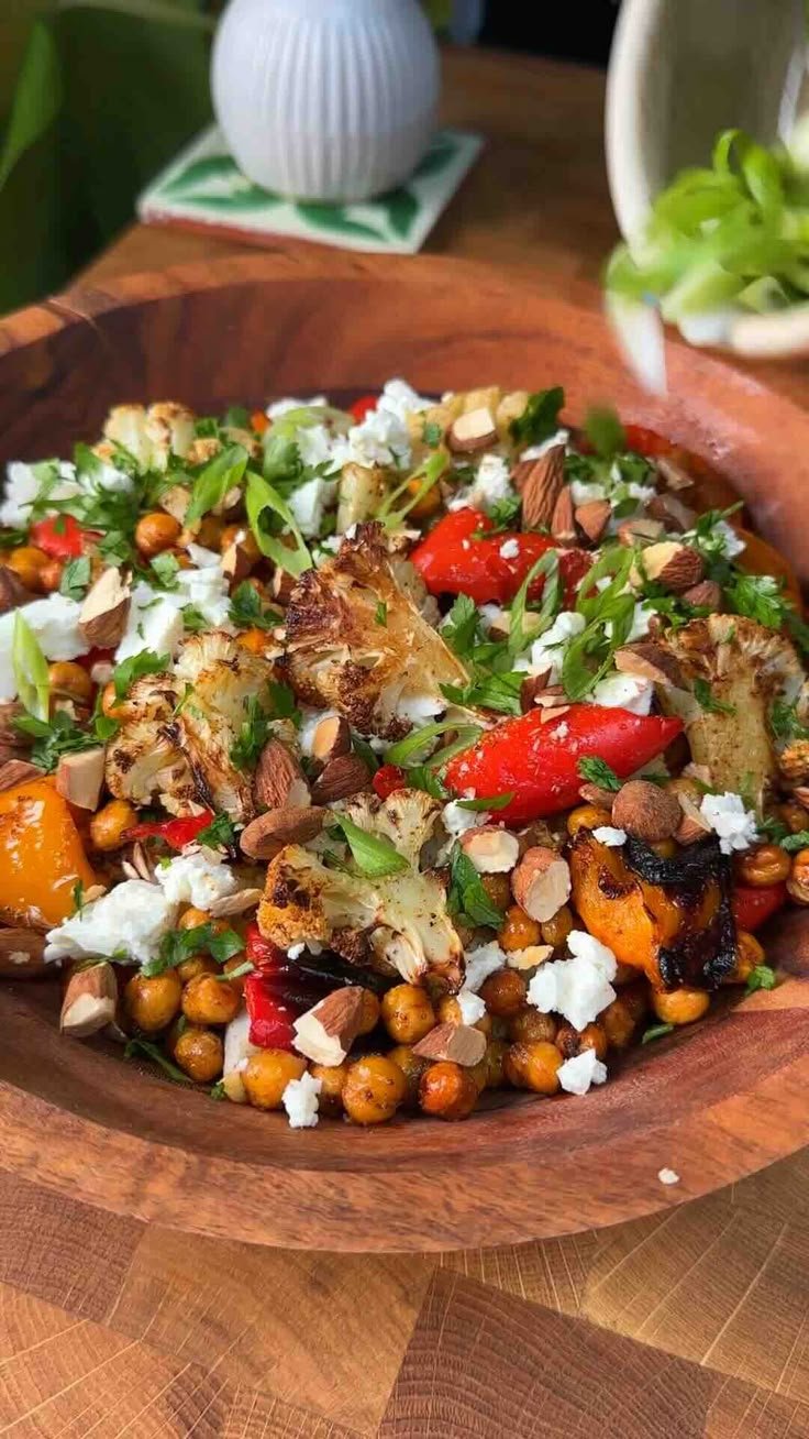 Mediterranean Baked Cauliflower, Chickpeas & Roasted Potatoes with Feta