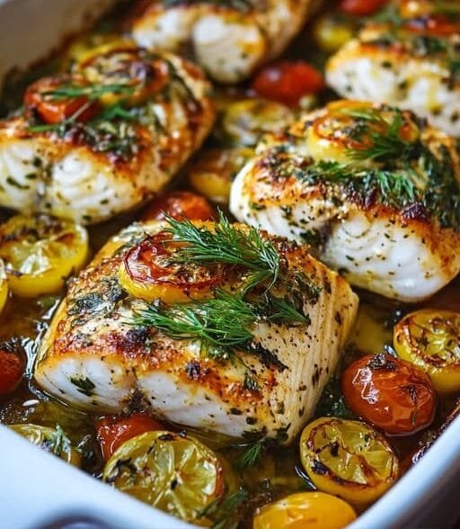 “Impress your family and friends with our stunning Mediterranean Baked Fish recipe! This easy-to-make dish is perfect for a quick weeknight dinner or a special occasion, featuring a flavorful blend of Mediterranean herbs and spices that will leave everyone wanting more.”