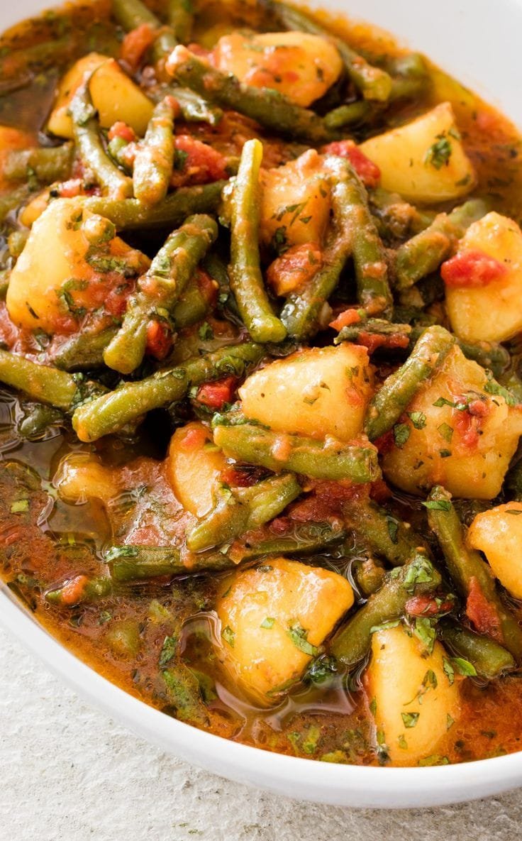 Mediterranean Braised Green Beans with Potatoes and Basil
