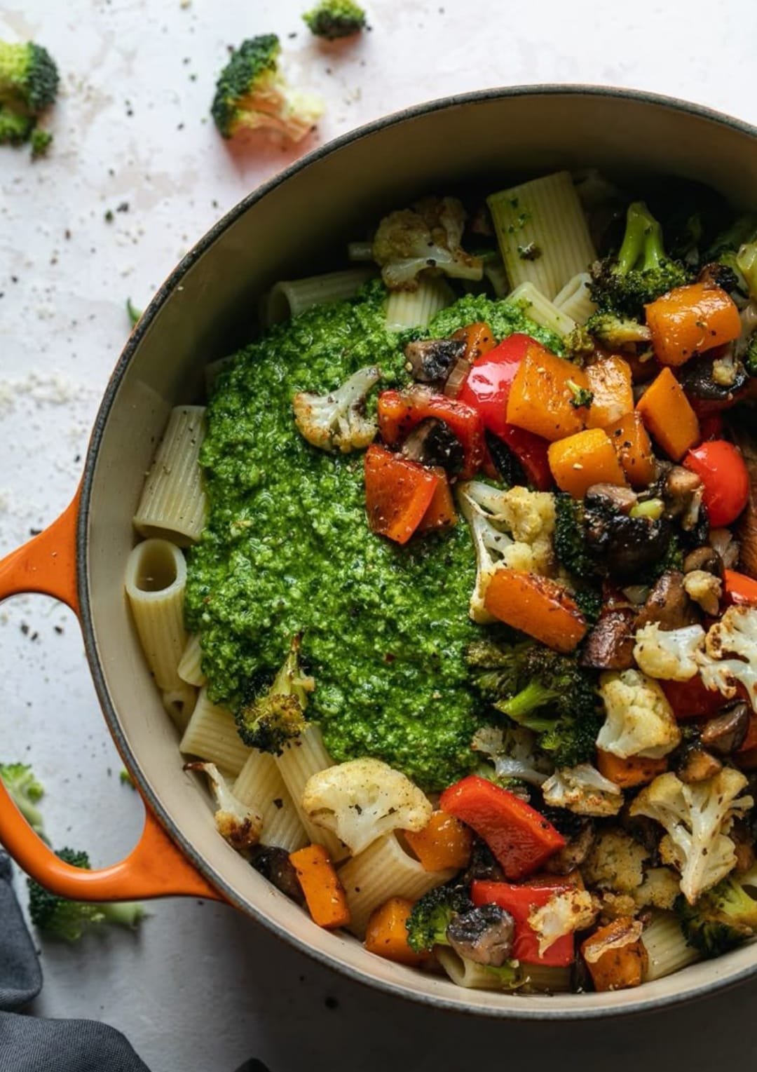 Mediterranean Broccoli Pesto Pasta with Roasted Vegetables