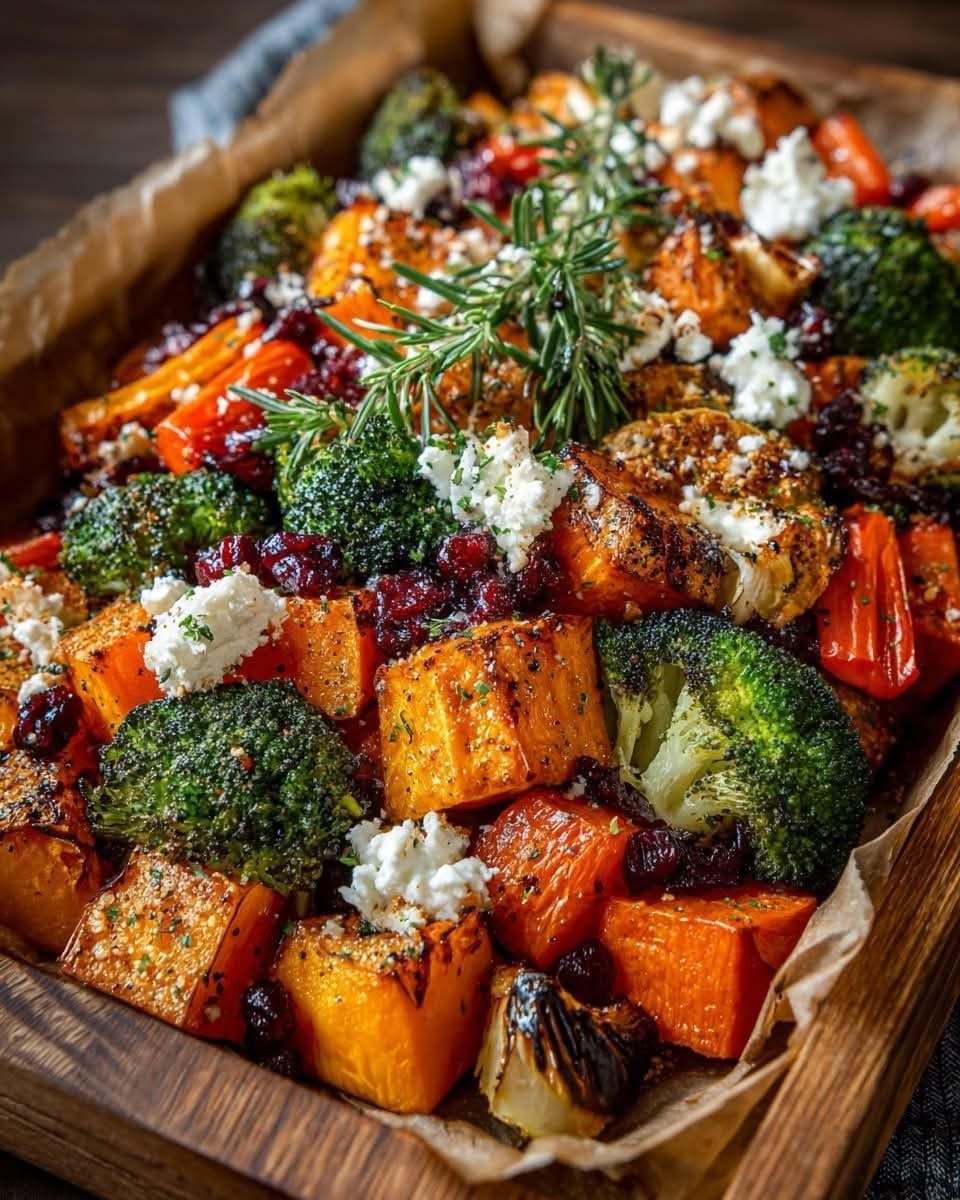 Mediterranean Caramelized Butternut Squash, Carrots, Brussels Sprouts & Sweet Potato with Feta, Walnuts & Pomegranate-Honey Glaze