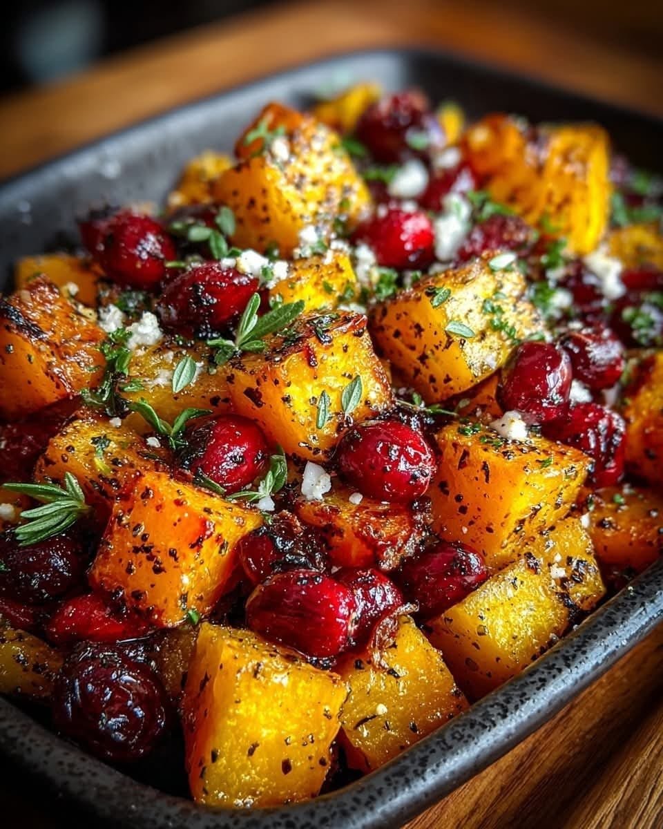 Mediterranean Caramelized Butternut Squash with Ricotta & Hot Honey Cranberry Glaze