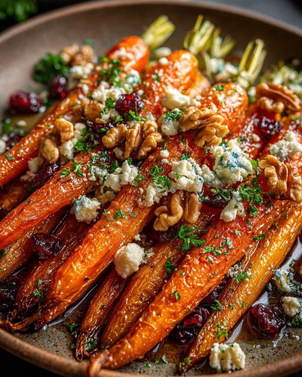 Mediterranean Caramelized Carrots with Feta & Toasted Walnuts and Cranberry-Honey Glaze