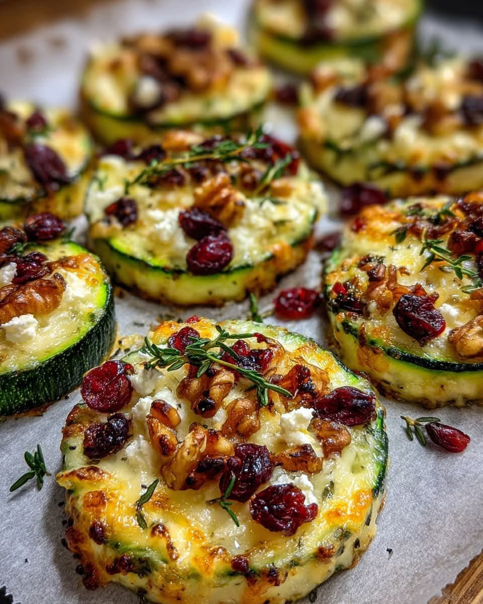 Mediterranean Cheesy Zucchini Rounds with Cranberries & Walnuts