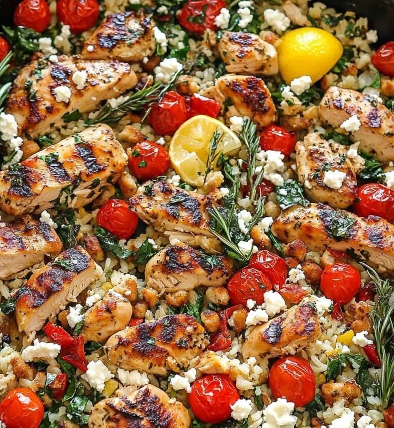 The Mediterranean Chicken Rice Bowl with Feta and Tomatoes is a flavorful and balanced dish inspired by the vibrant cuisine of the Mediterranean. This wholesome bowl features tender, seasoned chicken cooked to perfection, served over a bed of fluffy rice or your favorite grain. It’s topped with juicy cherry tomatoes, creamy crumbles of feta cheese, and a drizzle of olive oil for a burst of fresh, tangy flavors. A sprinkle of oregano and a hint of lemon elevate the dish, giving it an authentic Mediterranean touch. Packed with protein, healthy fats, and essential nutrients, this versatile bowl is a delicious choice for a quick lunch, dinner, or meal prep option.