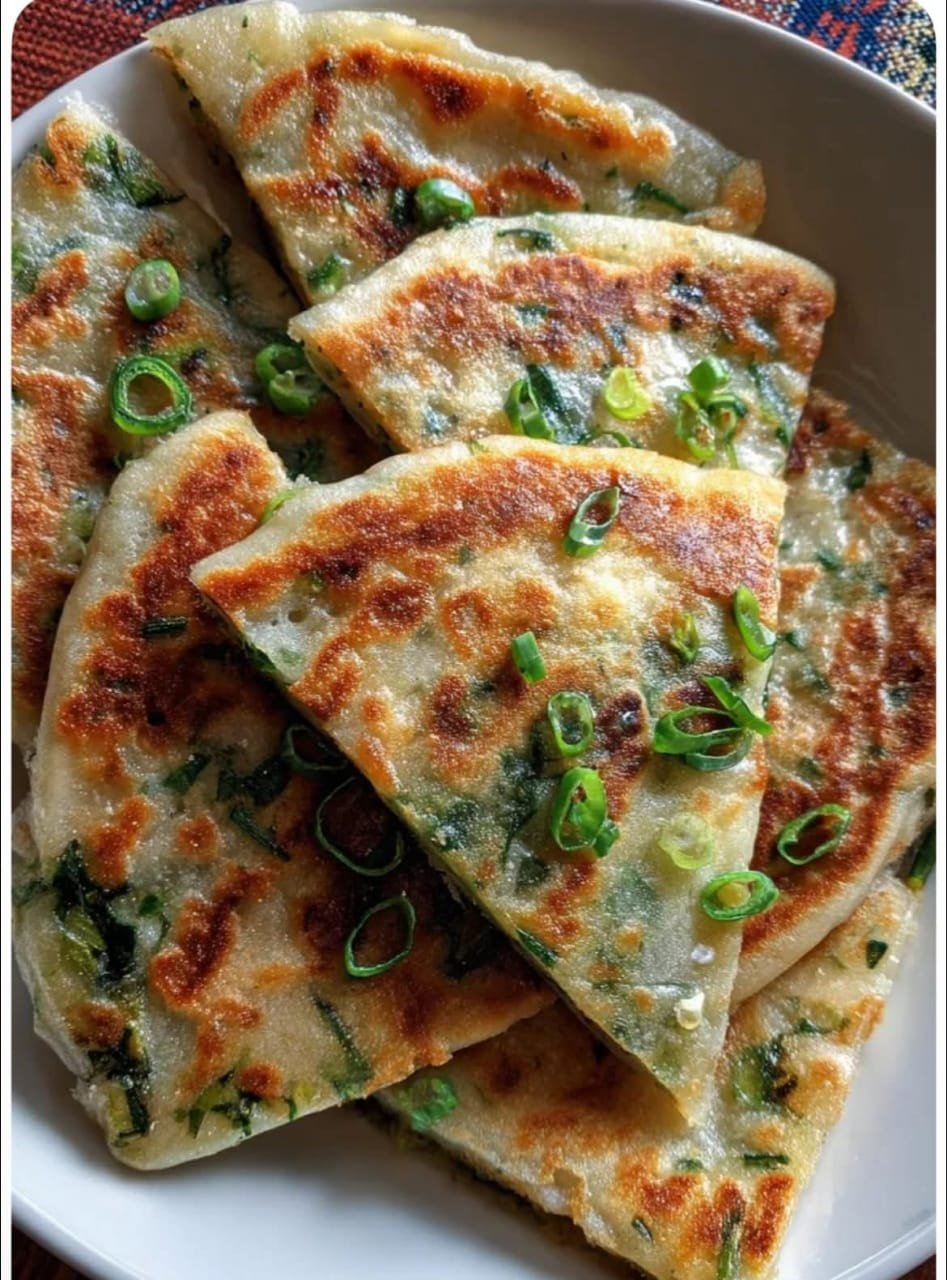 These Mediterranean Chinese Scallion Pancakes combine the crisp, flaky style of classic scallion pancakes with bright Mediterranean influences. Instead of relying only on oil and salt, this version layers in herbs, olive oil, spices, and a light tang from lemon. The dough stays close to the traditional method, so you still get chewy layers, but the flavors lean herbaceous and fresh.
