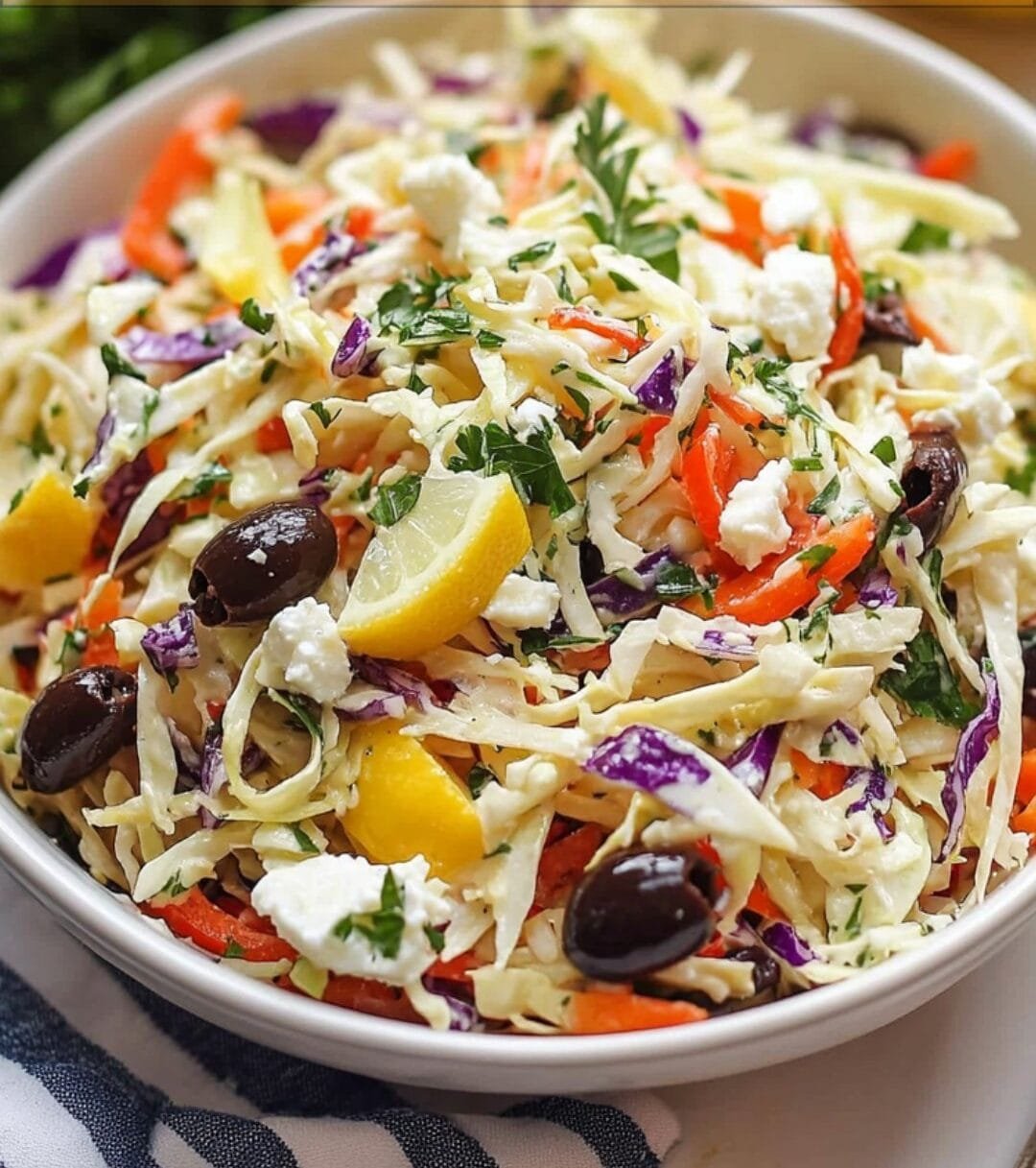 Mediterranean Coleslaw with Tangy Lemon Garlic Vinaigrette: A Fresh, Zesty Twist on a Classic Salad