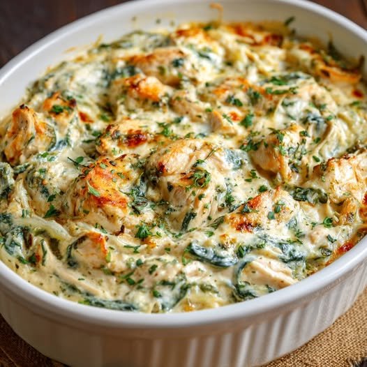 It works beautifully for busy weeknights, meal prep, or a relaxed weekend brunch. The chicken makes it filling, the spinach keeps it balanced, and the cheese ties everything together into a creamy, savory bake that slices cleanly and reheats well. It’s the kind of recipe that feels dependable, flexible, and always welcome at the table.