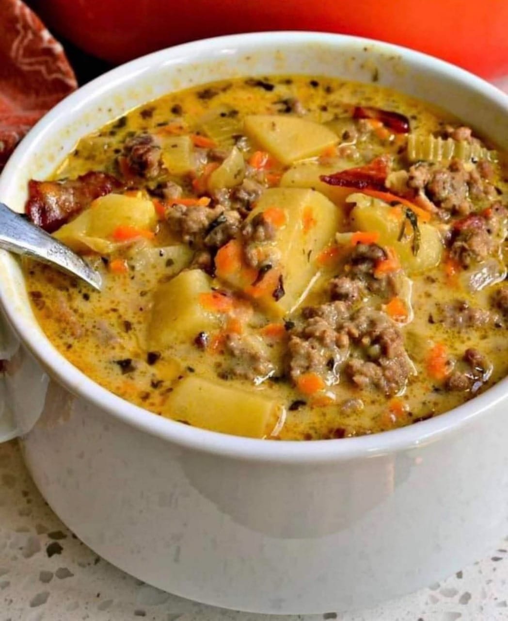 This Mediterranean Creamy Potato and Sausage Soup is cozy, satisfying, and full of hearty goodness. The creamy broth balances beautifully with tender potatoes, savory sausage, and bright greens. It’s a one-pot meal that feels rustic yet comforting—perfect for cool evenings or whenever you need something warm and nourishing. With its Mediterranean-inspired herbs and olive oil finish, this soup brings both comfort and a touch of sunny flavor to your table.
