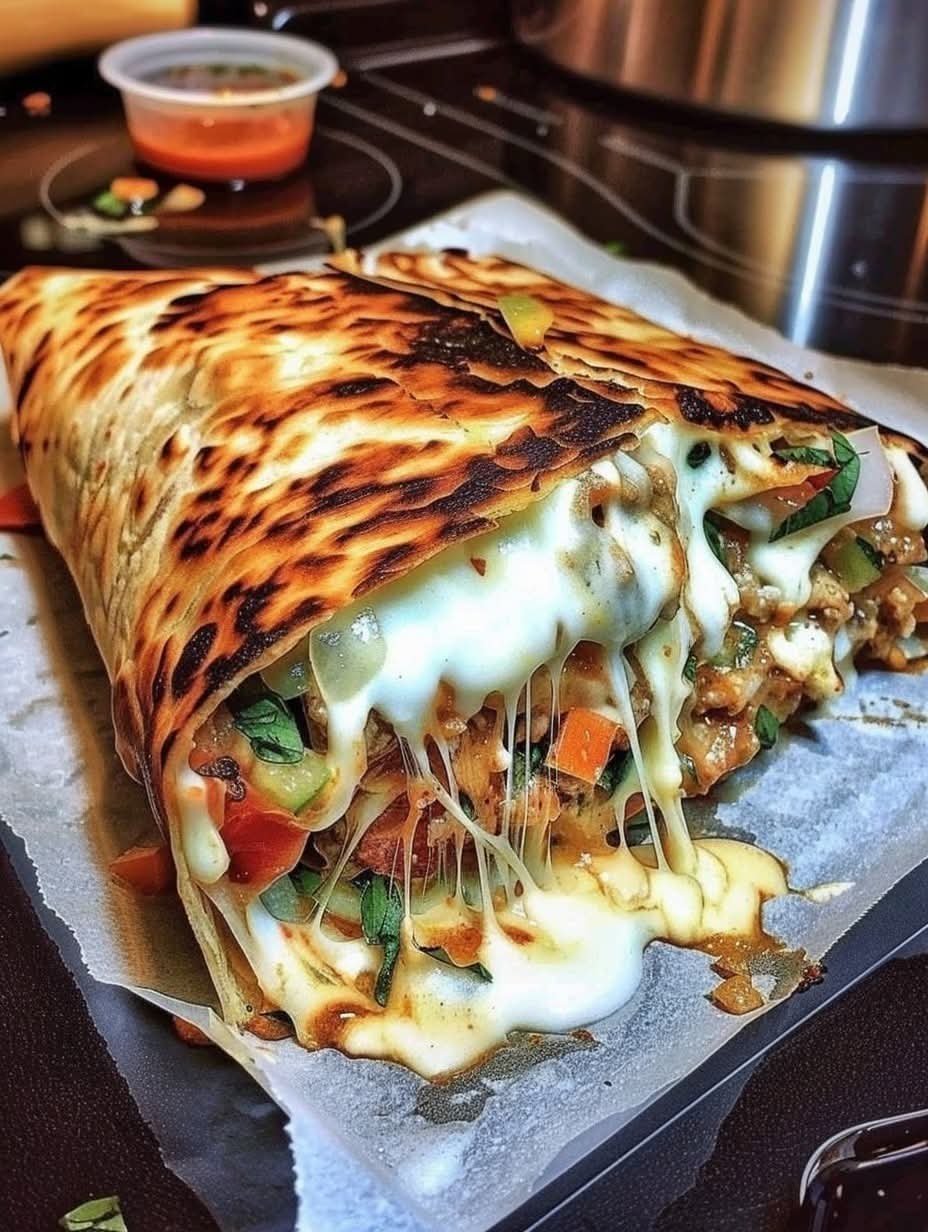Mediterranean Crispy Chicken & Cheese Wrap is a satisfying handheld meal loaded with crispy seasoned chicken, melted cheese, fresh Mediterranean vegetables, and creamy garlic yogurt sauce — all wrapped in a warm toasted flatbread or tortilla.