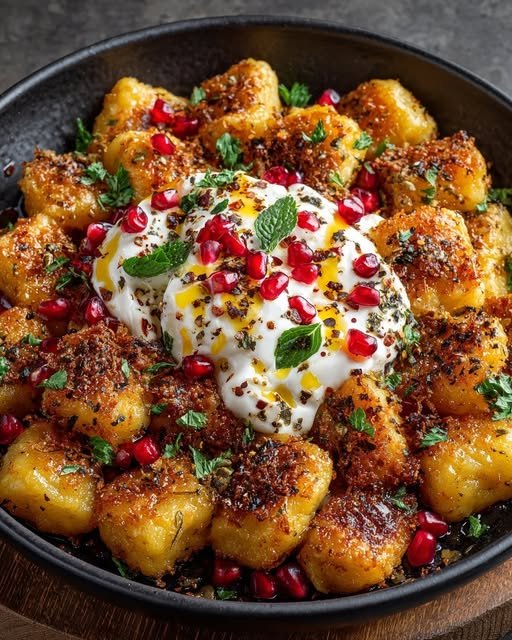 Mediterranean Crispy Gnocchi with Burrata, Pomegranate, and Hot Honey is a dish that feels playful, comforting, and elegant all at once. The contrast between crispy gnocchi, creamy cheese, juicy fruit, and sweet heat creates layers of flavor without complicated steps. It is adaptable, visually striking, and perfect for sharing. Whether served as a centerpiece dish or a standout side, this recipe delivers bold flavor with minimal effort and brings a modern Mediterranean touch to the table.