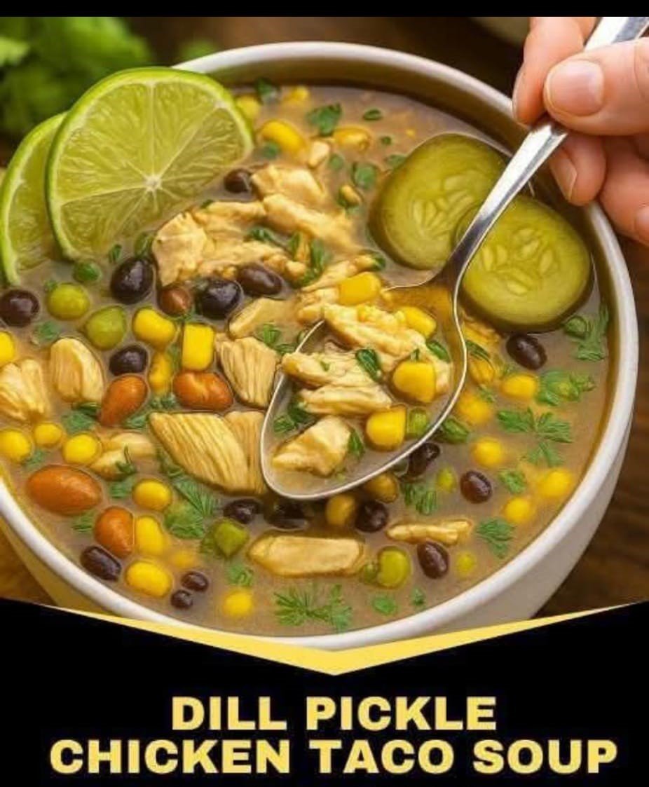 This soup mixes Mediterranean herbs, tangy pickles and a taco-seasoned broth in a way that feels new but comfortable. It cooks quickly, keeps well and works with pantry ingredients you probably already have. The chicken adds protein, the vegetables bring color and texture and the pickles brighten every spoonful. You can adjust the spice, the texture and the richness based on your taste. It’s great for lunch, dinner or meal prep and tastes even better the next day. If you enjoy soups that feel wholesome but still interesting, this one is worth adding to your rotation.
