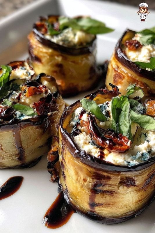 Tender grilled eggplant slices rolled around a creamy mixture of feta, Greek yogurt, garlic, and fresh herbs, drizzled with olive oil and a hint of lemon. Non-spicy, visually stunning, and protein-rich enough to delight any guest.