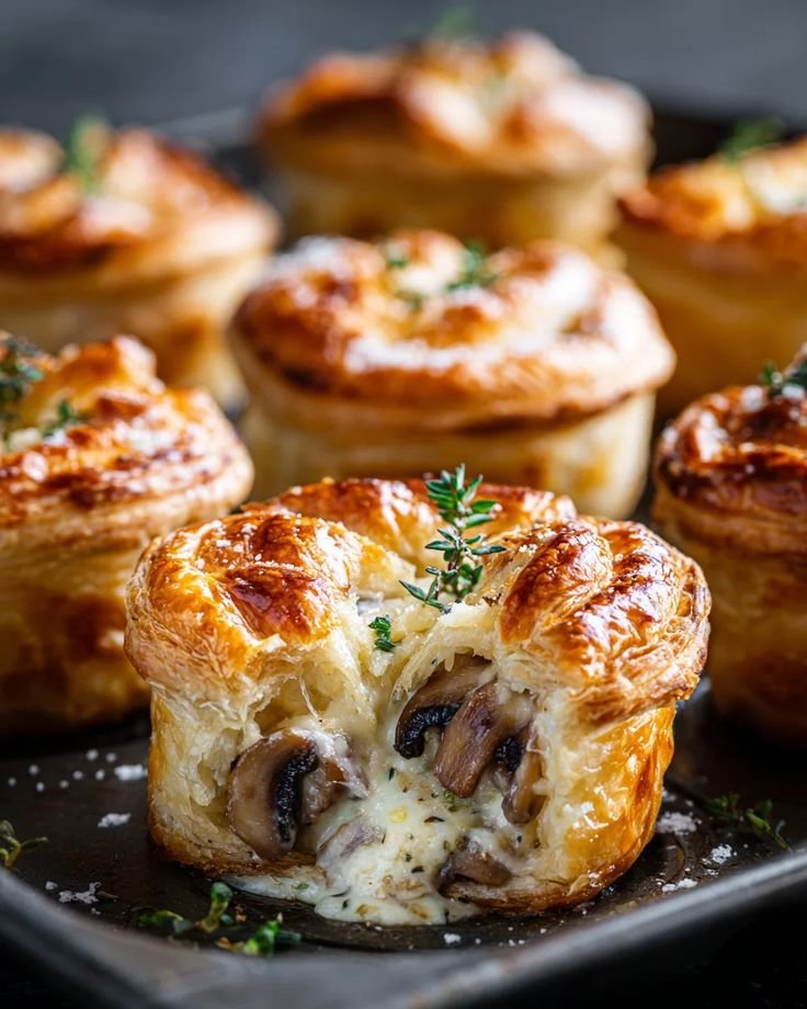 Mediterranean Flaky Puff Pastry Stuffed with Mushrooms & Cheese