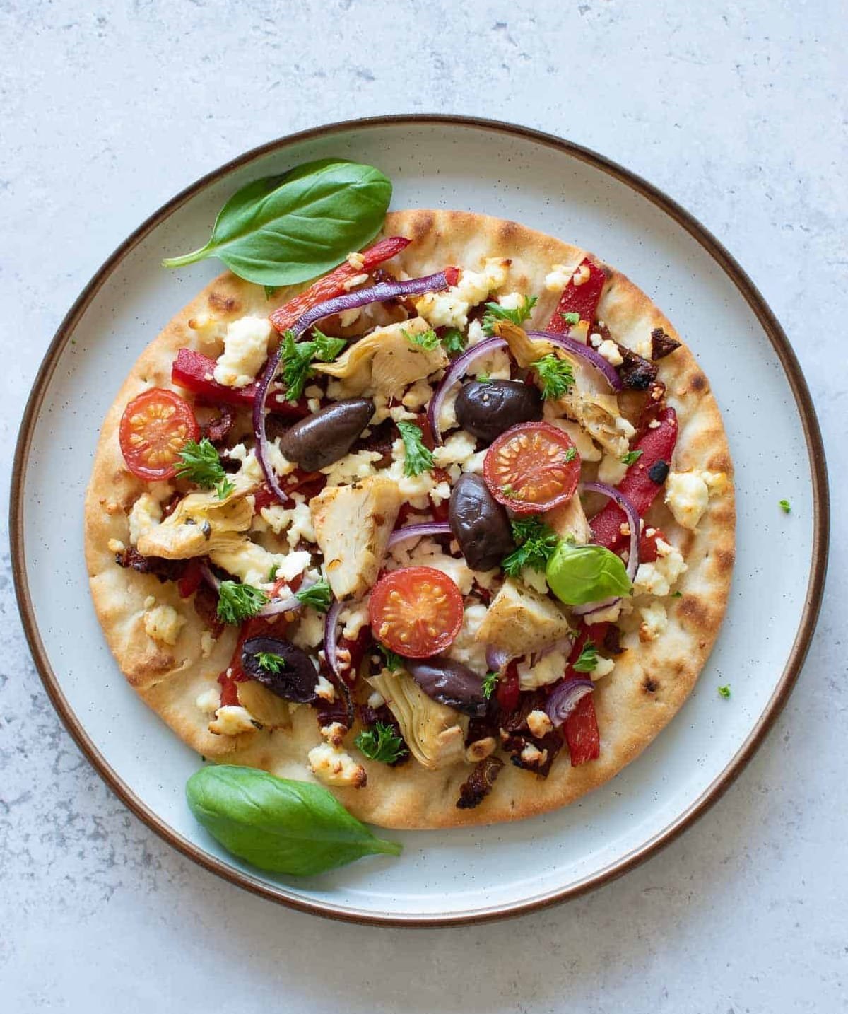 Try different bread: You can make this recipe using any flatbread that you like. You can even try different versions, and decide which you like better. Greek style soft flatbread are great. You can also try pitta bread, pizza crusts, naan bread and more.