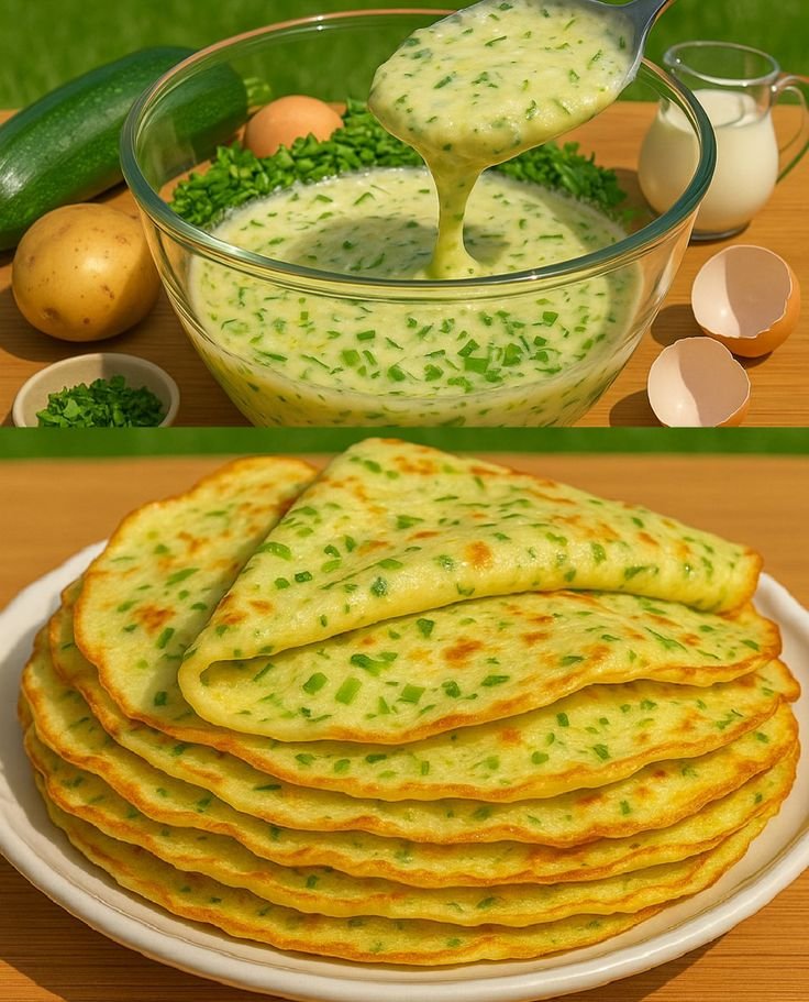 These savory pancakes combine shredded zucchini and potato with aromatic herbs, a touch of cheese, and olive oil for a Mediterranean twist. Perfectly fluffy yet crisp, they’re great as a light lunch, appetizer, or side — especially when served with Greek yogurt or tzatziki.