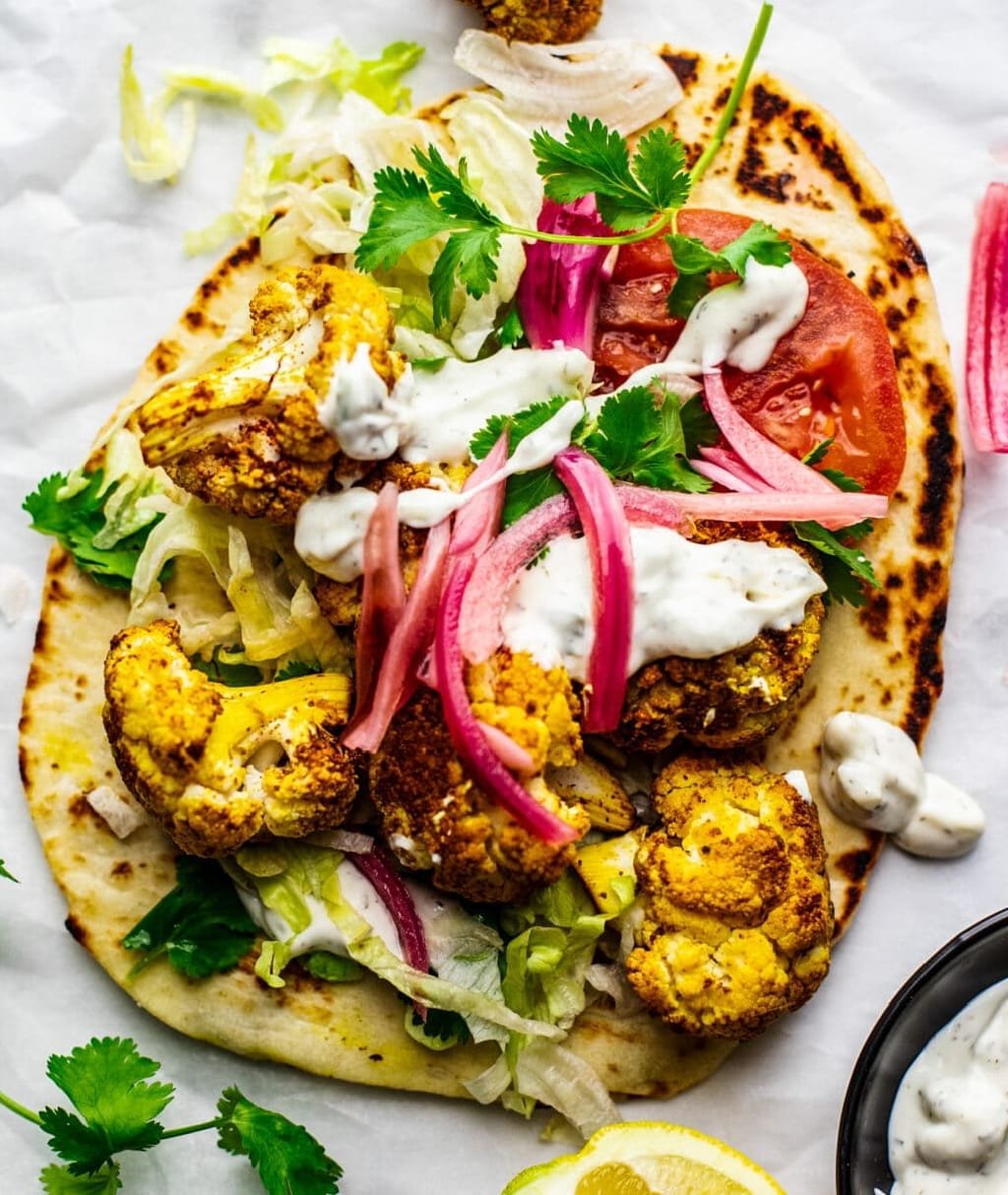 Enjoy your Mediterranean cauliflower shawarma wraps!
