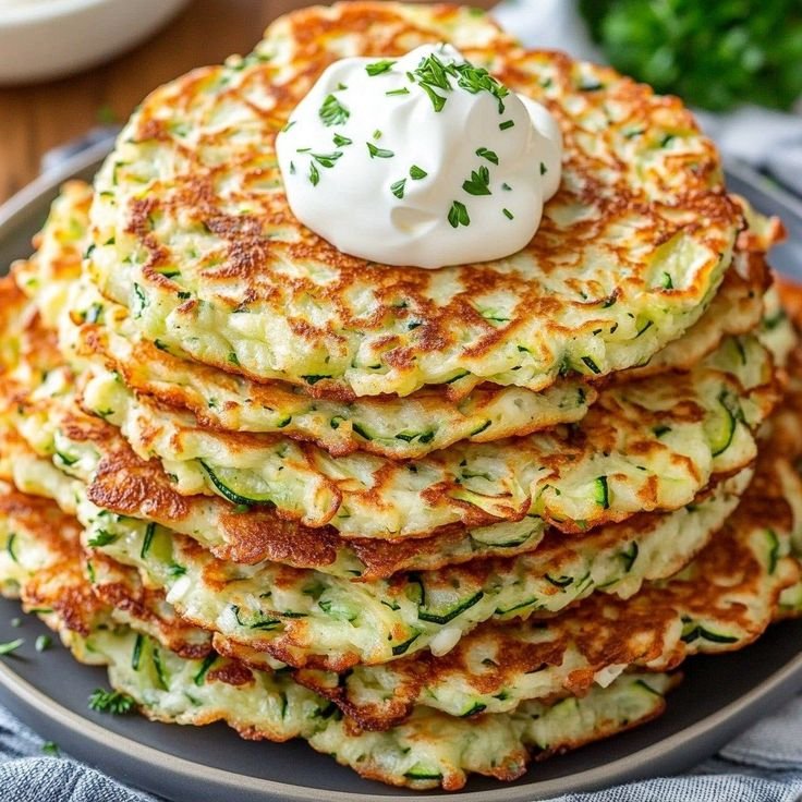 Fluffy, golden pancakes made with grated zucchini, fresh spinach, and aromatic herbs. Lightly pan-fried for crisp edges and served with a creamy Mediterranean-style yogurt sauce. Perfect as a snack, appetizer, or light meal.
