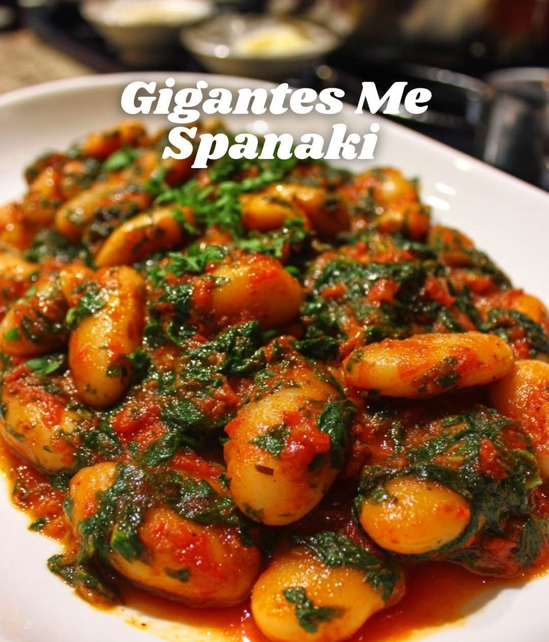 Gigantes me Spanaki is a classic Greek dish that combines tender giant white beans with fresh spinach in a savory tomato-herb sauce. It’s hearty, nutritious, and comforting while remaining light enough for a Mediterranean-style meal. The beans provide creamy protein and fiber, and the spinach adds color, minerals, and a subtle earthiness. Aromatics like onion, garlic, and fresh herbs give the sauce a layered flavor, while a touch of olive oil brings richness without heaviness.