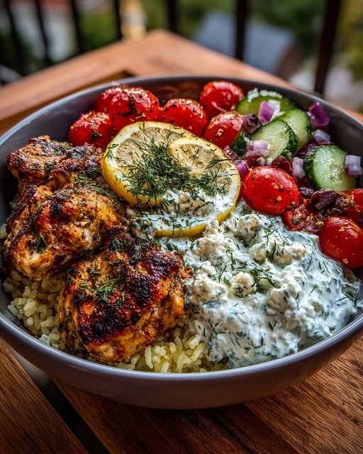 These Mediterranean Greek Chicken Gyro Bowls bring all the bold, fresh flavors of a classic gyro into an easy, customizable bowl format. Juicy, marinated chicken is seasoned with lemon, garlic, oregano, and smoked paprika, then cooked until tender and lightly charred. Everything is layered over a hearty base of rice, quinoa, or couscous and finished with crisp vegetables, briny olives, and a creamy dill feta sauce that ties it all together. This dish is satisfying without feeling heavy and works just as well for meal prep as it does for a relaxed family dinner.