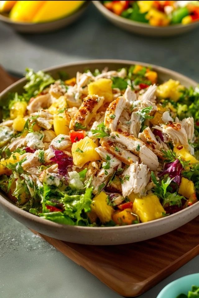 This salad is light yet satisfying. Sweet pineapple pairs beautifully with savory chicken, while a simple lemon-olive oil dressing keeps it fresh and healthy—ideal for lunch, dinner, or meal prep.