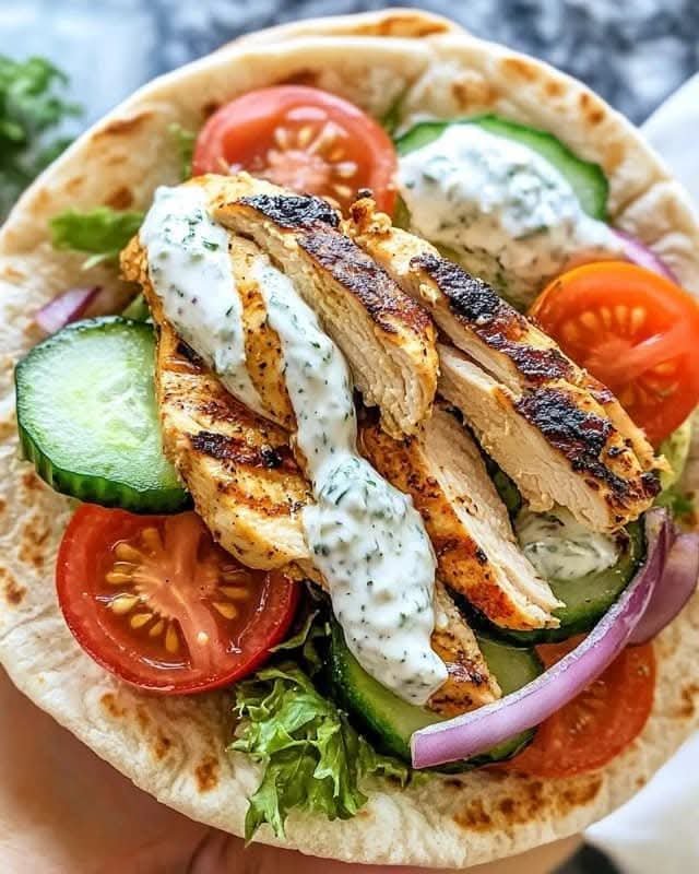 This Mediterranean-style chicken wrap bursts with vibrant flavors from juicy grilled chicken, crisp vegetables, and cool, creamy tzatziki sauce all nestled in a warm pita. It’s perfect for lunch, dinner, or even meal prep. The combination of lean protein, fresh veggies, and healthy fats makes this not only delicious but also nutritious.