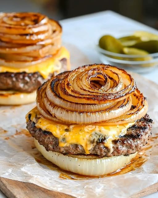 Mediterranean Grilled Onion Ring Burger Stacks take the classic burger to a bold, flavorful level. Juicy grilled patties are layered with crispy onion rings, fresh herbs, and Mediterranean-inspired toppings like feta, olives, and yogurt-based sauces. The result is a burger that is indulgent yet balanced, smoky yet fresh. Perfect for weekend grilling, casual dinners, or even a show-stopping meal for friends, these stacks bring texture, flavor, and a touch of Mediterranean flair to every bite.
