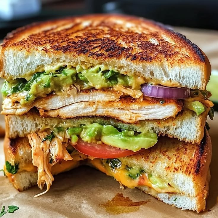 A warm, satisfying sandwich loaded with smoky grilled vegetables, creamy melted avocado, and Mediterranean-inspired flavors. Perfect for a wholesome lunch or light dinner.