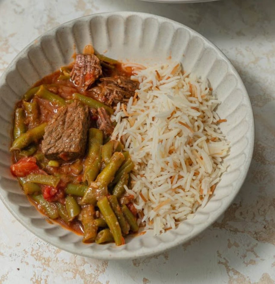 A classic Lebanese home-style dish, Loubieh bil Zeit is a light, olive-oil–based green bean and tomato stew—naturally vegan, non-spicy, heart-healthy, and perfect for a Mediterranean lifestyle. Paired with fragrant lime rice, it becomes a nourishing, balanced meal.