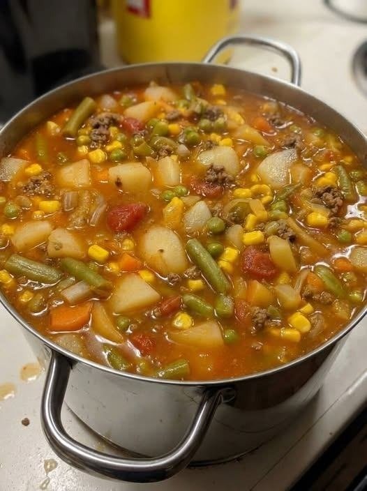 This Mediterranean hearty beef and vegetable soup is a comforting, nourishing dish that’s perfect for any season. Tender chunks of beef are simmered with a variety of colorful vegetables, creating a rich, flavorful broth. Diced potatoes, carrots, celery, green beans, peas, and corn add texture, sweetness, and substance, while tomatoes and Italian herbs bring a bright, savory Mediterranean note.