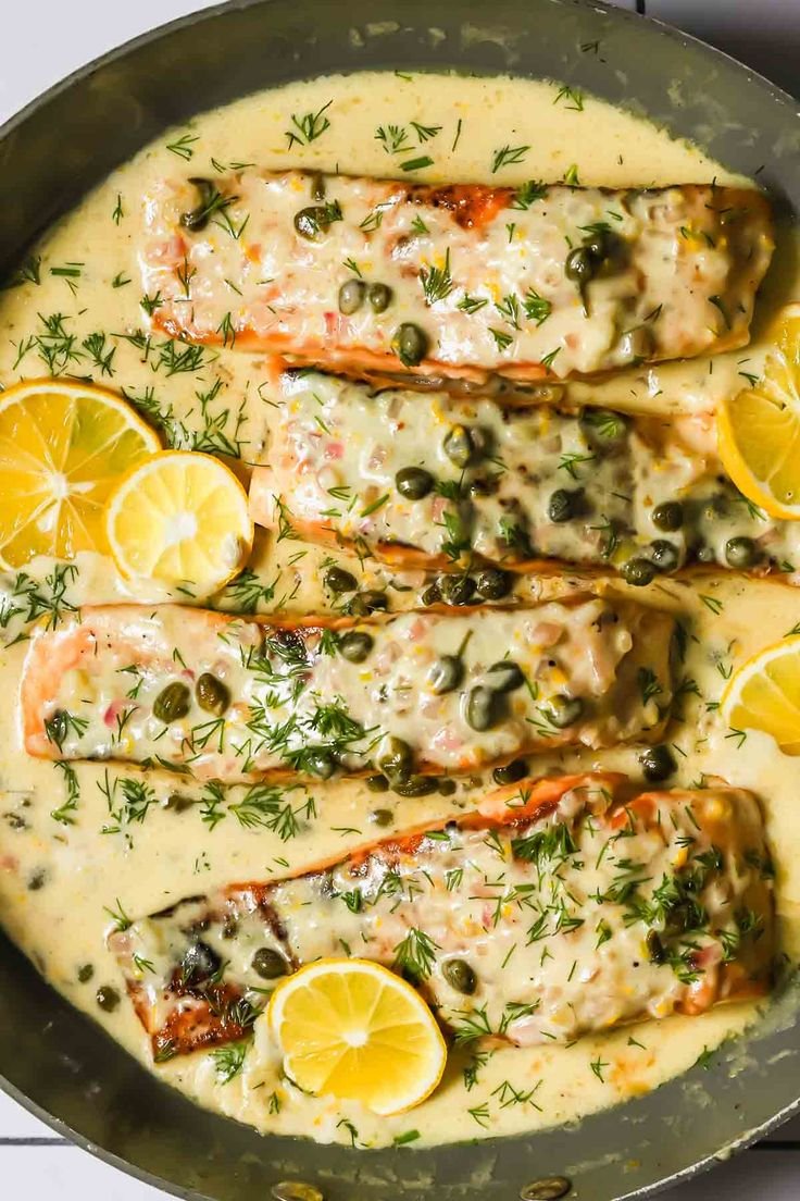 5. Optional: garnish with extra dill, lemon wedges, or pine nuts.