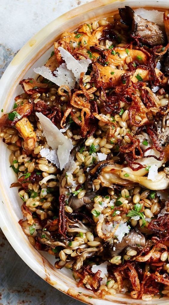 Nutty barley tossed with a vibrant mix of parsley, mint, and lemon, paired with butter-basted mushrooms that are golden, caramelized, and aromatic. A light olive oil–lemon dressing ties it together—protein-rich, fiber-packed, and utterly satisfying.