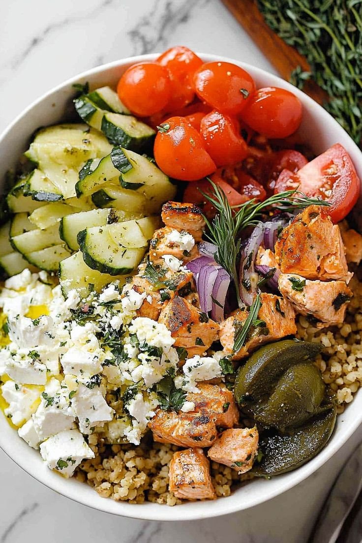 Mediterranean Honey-Lemon Salmon with Creamy Whipped Feta & Herbed Quinoa