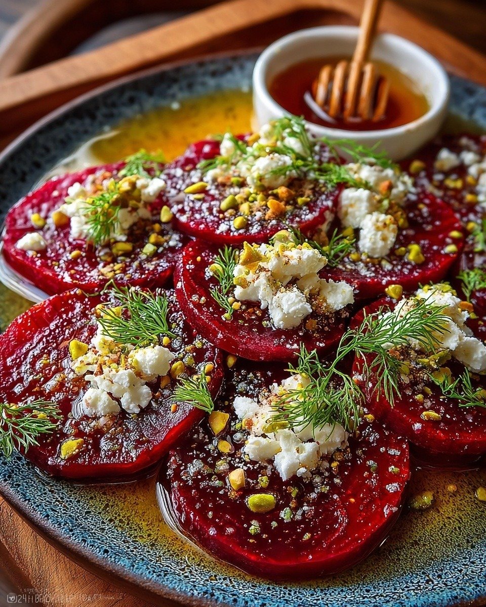 Mediterranean Hot Honey Beet Carpaccio with Feta Snowflakes is a dish that turns humble ingredients into something memorable. With its balance of sweet, spicy, salty, and earthy flavors, it feels refined yet approachable. Perfect for special occasions or everyday elegance, this recipe highlights the beauty of vegetables while staying true to Mediterranean simplicity and freshness. Once you serve it, it’s sure to spark conversation and become a favorite on your table.