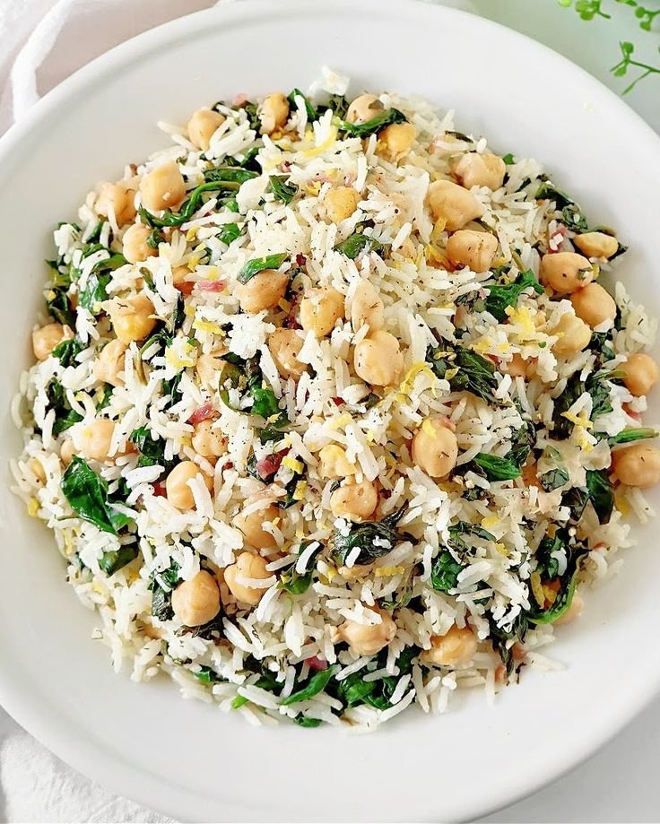 This Mediterranean Lemon Spinach Rice is light, fragrant, and comforting. Fluffy rice is cooked with gentle herbs, folded with tender chickpeas and fresh spinach, then finished with a cool garlic-lemon yogurt drizzle. It’s perfect as a main vegetarian dish or a side with grilled chicken or fish.