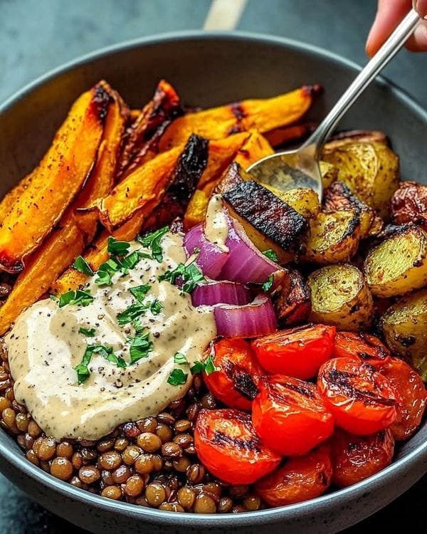 Mediterranean Lentil Bowl with Roasted Vegetables